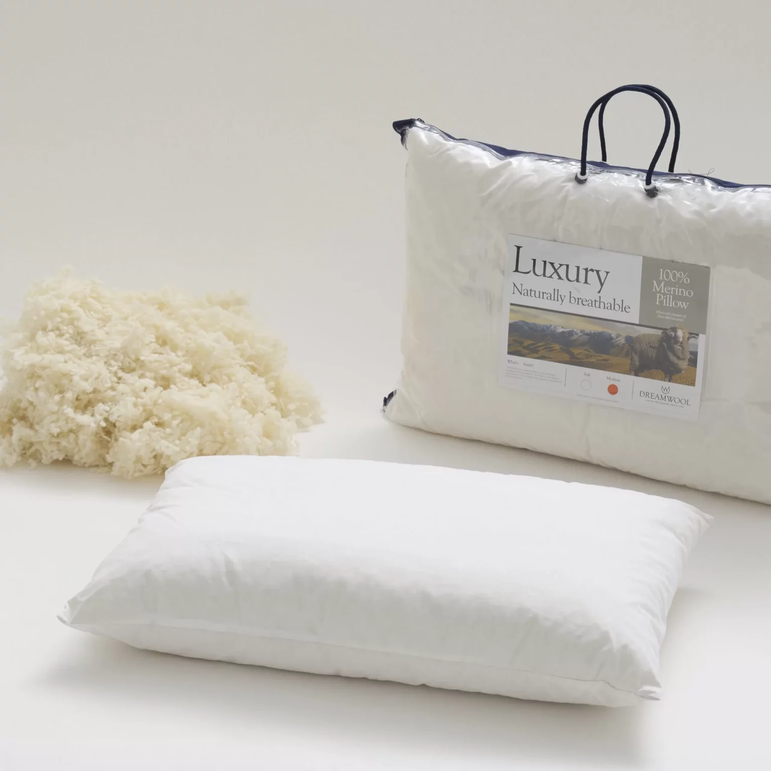 100% Merino Pillow – Especially beneficial for hot sleepers, this pillow is filled with soft clusters of pure Merino wool which adjust and mould to your shape, easily revitalised with a quick fluff-up. Encased in 100% cotton with a zipped end to allow you to customise the amount of wool filling to suit your individual needs.